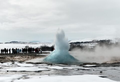 Unsere Route führte uns entlang der Südküste mit ihren faszinierenden Naturwundern. Wir bestaunten zahlreiche Wasserfälle, darunter den gewaltigen Gullfoss, und besuchten den berühmten Strokkur Geysir, der in regelmäßigen Abständen seine Wasserfontäne in die Luft schleudert. Ein weiteres Highlight war eine Gletscherwanderung mit Eishöhle – ein beeindruckendes Erlebnis, das uns nicht nur die Schönheit des Eises zeigte, sondern auch die Vergänglichkeit der Gletscher durch das Schmelzen bewusst machte.