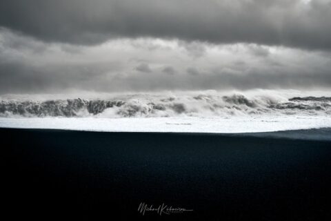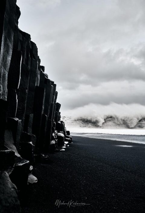 Natürlich durfte auch der legendäre Black Beach bei Vík nicht fehlen. Dieser Strand mit seinem tiefschwarzen Lavasand und den imposanten Basaltsäulen ist ein spektakuläres Naturphänomen und zählt zu den beeindruckendsten Stränden der Welt. Besonders faszinierend sind die Felsformationen Reynisdrangar, die wie riesige Trollfiguren aus dem Meer ragen. Doch dieser Strand ist auch bekannt für seine heimtückischen Wellen – und genau eine davon erwischte mich! Zum Glück blieb es bei nassen Füßen, und meine Ausrüstung hat es unbeschadet überstanden.