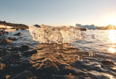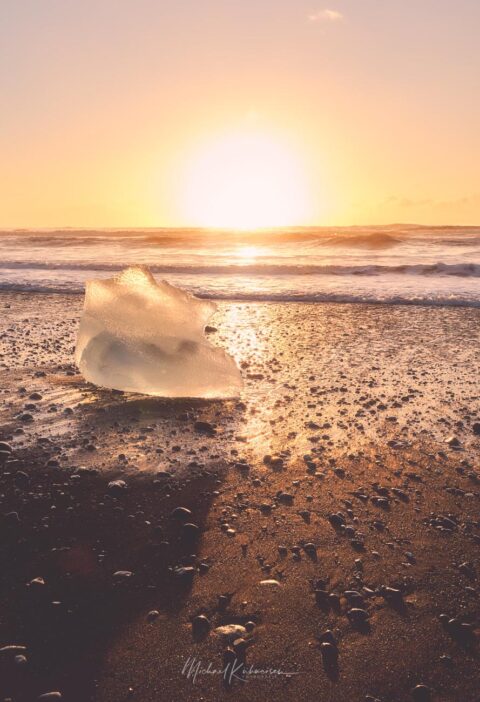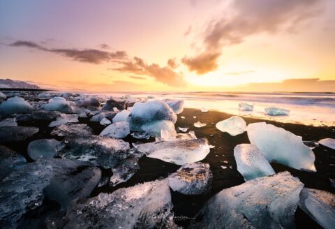Ein weiteres unvergessliches Erlebnis war der Besuch des Diamond Beach. An diesem schwarzen Sandstrand an der Gletscherlagune Jökulsárlón glitzern riesige, vom Meer angespülte Eisbrocken wie Diamanten in der Sonne – ein surrealer Anblick und ein Paradies für Fotografen.